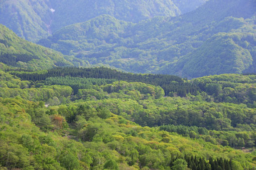 | 広葉樹に入り交じり、パッチワークのように杉林が存在する。 | |||