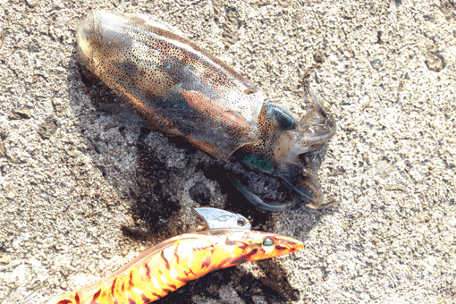 | 高浜の海で早朝釣れたアオリイカちゃんです。まだ小さかったので逃がしてあげました。 | ||||||||||||||||