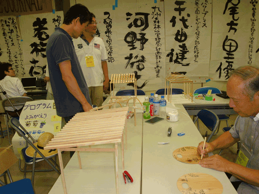 | 今回は韓国からクォン先生率いる韓国産業技術大学の学生メンバーが4人参加し、その内の2人アン・セミさん、キム・チョロクさんがぶどうチームに参加。コミュニケーション手段は互いに充分とは言えない英語のみ。それでもさすがにデザインを学ぶ学生だけあって、実に素直にスケッチ描いたり、模型の製作に励んでくれ、ぶどうチームの大きな戦力になってくれた。メンバーの皆さんも嬉しいやら楽しいやらだったのではないだろうか。 | ||||||||||||||||