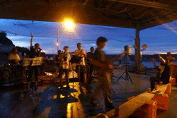 そしてさらに、2泊3日のスケジュールの折り返し、中日の14日(日)夕刻には高浜漁港を会場に、「夢高まる浜夕陽コンサート」と私たちが勝手に名付けた懇親交流宴を元気よく開催することができました。 |