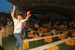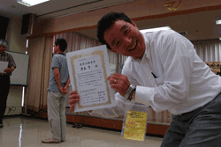 そして参加者の中からも、河浦町出身の実力派デザイナー若杉浩一氏のソロギターぶりに一同感極まりました!また、ほのぼの楽器アンデス25を操る福田裕美さんの演奏ぶりも拍手喝采、とりは若かりしギタリスト九大生の福居君がつとめてくれました。 |