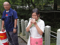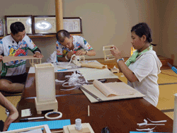 | 桜木神社で休憩中。吉野の名物、こばしの焼き餅を頂いています。 | 手漉き和紙で、灯り作りを体験。 | ||||||||||||||
