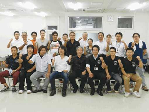 | 「杉コレクション2013 in 延岡」1次選考会を終えて、審査委員長 内藤 廣氏(前列右から4番目)と審査員 南雲勝志氏(前列左から4番目)を囲んで関係者一同で。 | |||||||||||||||