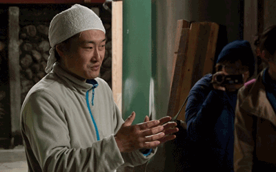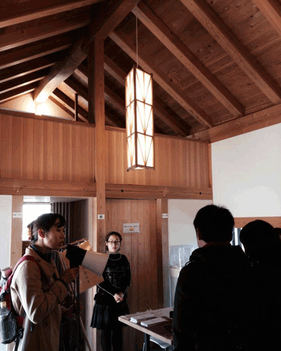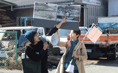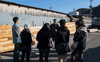 | 左側が吉野町地域おこし協力隊の野口あすかさん、右側がウッドベースの菊谷紀恵さん。西村守夫さんの案内のサポートをしてくれました。 | |||||||||||||||
