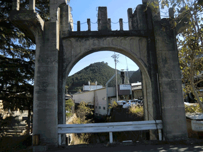 | 原木輸送に使われた運河の水門跡です。アーチに向こうに見える山が富士山のような形なので、吉野富士と命名しました。 | |||||||||||||||