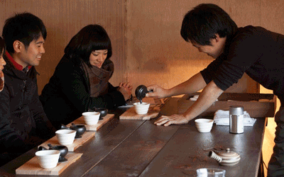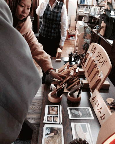 | まちあるきの休憩タイム。お菓子が入っている箱は、昨年12月の吉野材を使った暮らしの道具デザインコンペの最優秀作品"杉のパンケース"です。 | |||||||||||||||