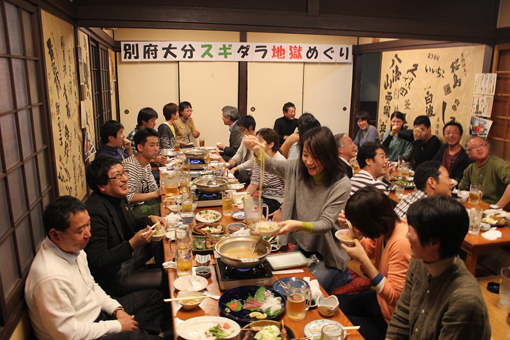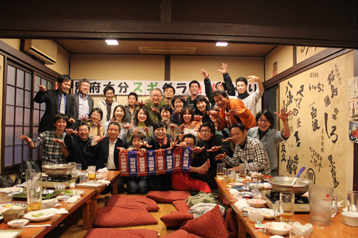 | 二次会の締め。新考案、湯の街別府の締め踊り。 | |||||||||||||