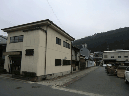 | 吉野中央木材の事務所。鉄筋コンクリートの建物です。「ホマレのハナレ」となる予定の木造家屋はその奥、事務所と目立て場の間にあります。 | |||||||||||||||