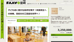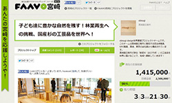 | でも、今回は飫肥杉仮面の話ではない。「ありがとう」という気持ちいっぱいで書き進めよう。 「杉祭りin東京」は、obisugi design 世界展開プロジェクトチーム(有志6人)による、林業再生への挑戦の1ページとして開催した。いや、10ページ分ぐらいあったのかもしれない。その挑戦とは、どんなものなのか。FAAVO(ファーボ)という地域応援クラウドファンディングを通じた取組だ。FAAVOに掲載されていた文章を切り取って紹介しよう。 | |||||||||||||||