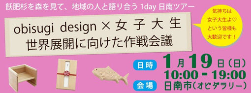 | 「obisugi design×女子大生 世界展開に向けた作戦会議」のバナー | |||||||||||||||