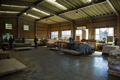 | 幸仁会「川本園」に初めて訪問したのは、プロジェクトのお話を伺ってから数週間後。 埼玉中央部森林組合から認証林の原木を仕入れ、丸太から製材、乾燥、集成材まで加工できる充実した機械・設備を持つ作業棟は、整理整頓され、利用者さんが作業しやすいように工夫がありました。また、これまでに製作された木製品を拝見すると、丁寧かつきれいな仕事で、ここは何でも製作できるのではと、確かな技術力に驚きました。 |